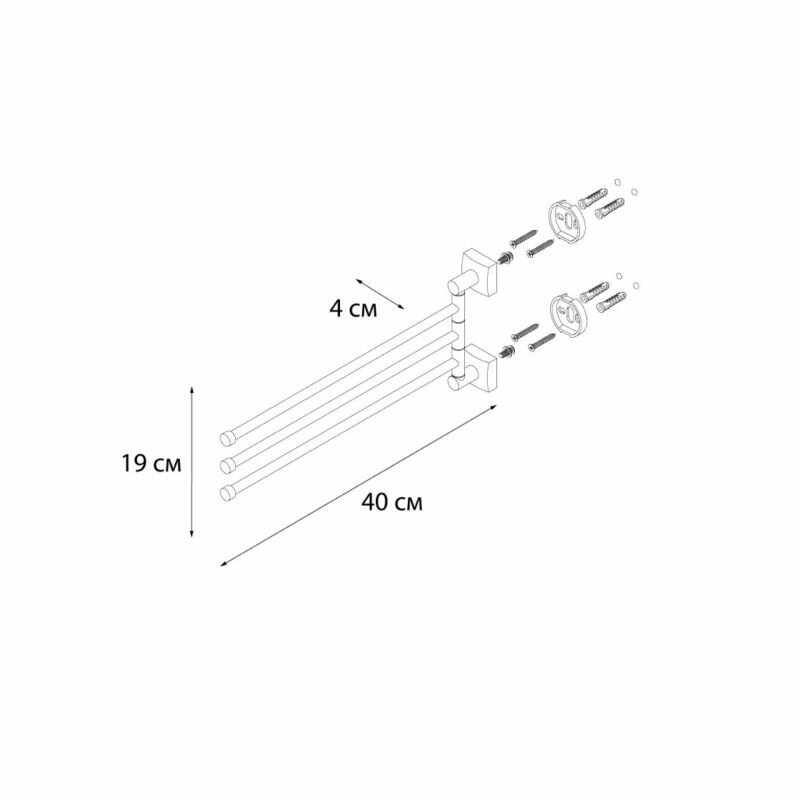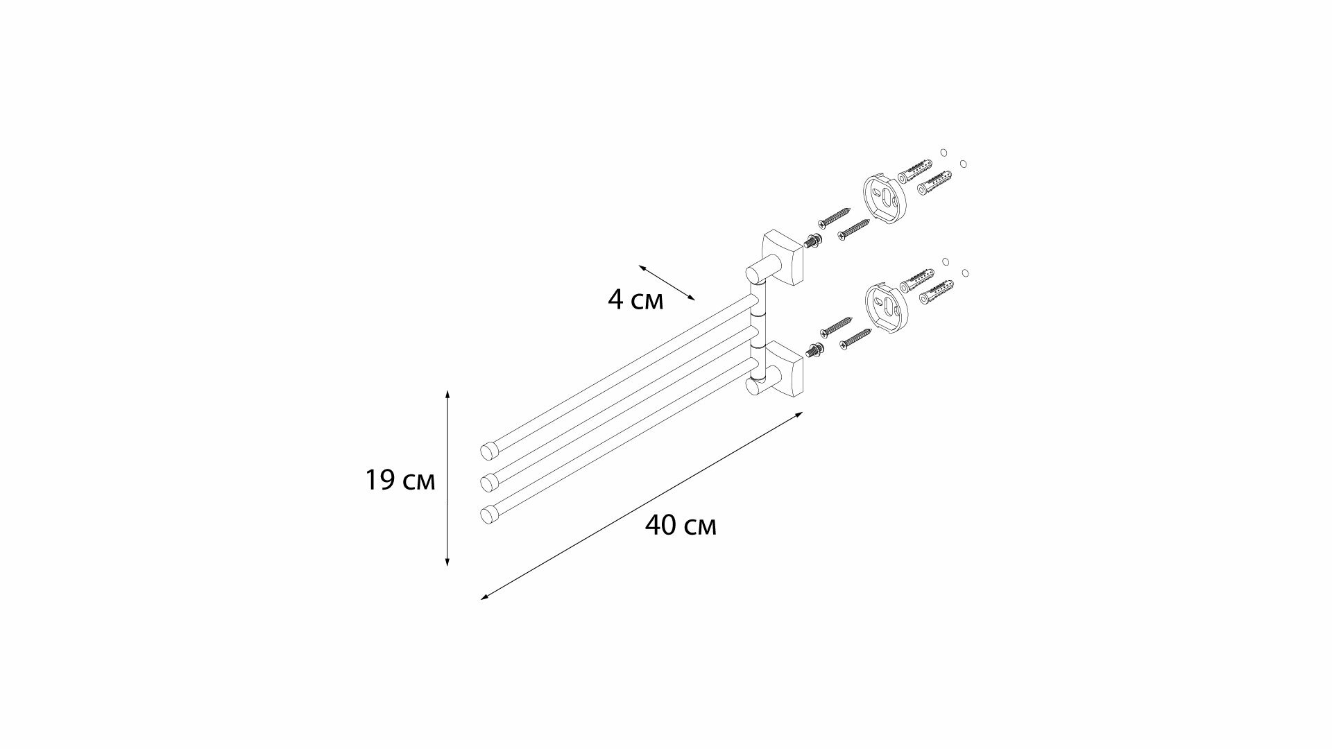 Металлический поворотный держатель для полотенец Fixsen Kvadro FX-61302A-3 тройной в лаконичном дизайне, который подойдет к любому современному интерьеру ванной комнаты.