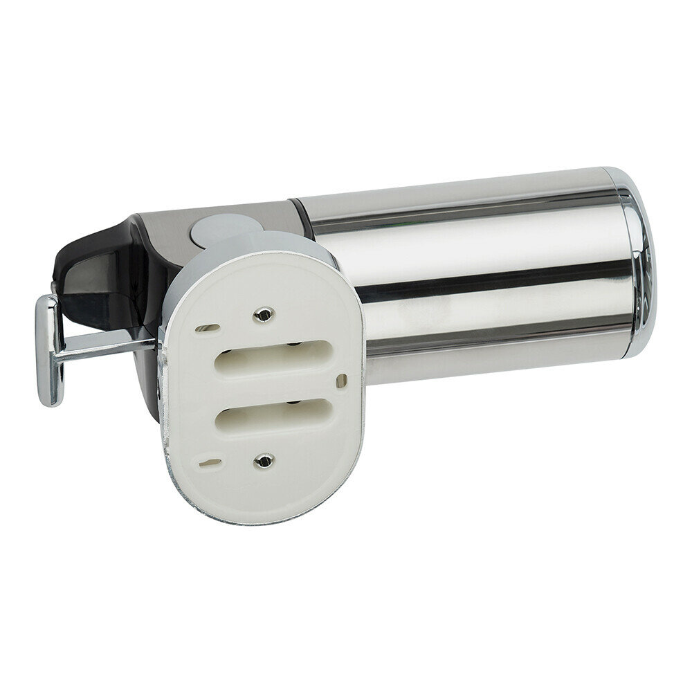 Дозатор для жидкого мыла подвесной размером 12,2×24×10 см и объемом 0,5 л позволяет экономно расходовать моющее средство, которое можно покупать в более выгодных мягких упаковках. Чтобы получить порцию мыла, достаточную для мытья рук, нужно слегка нажать на крышку прибора.