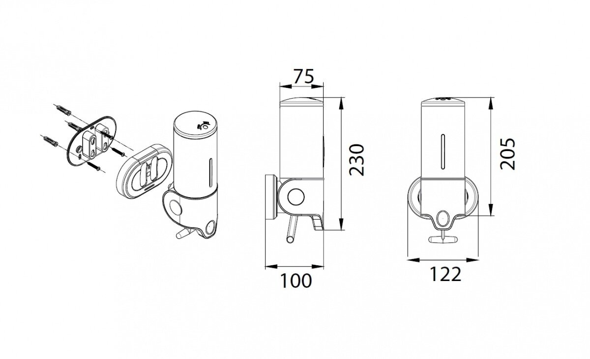 Дозатор фиксируется на стене над мойкой надежным винтовым креплением, поэтому не будет опрокидываться в процессе использования и занимать место на раковине или столешнице.