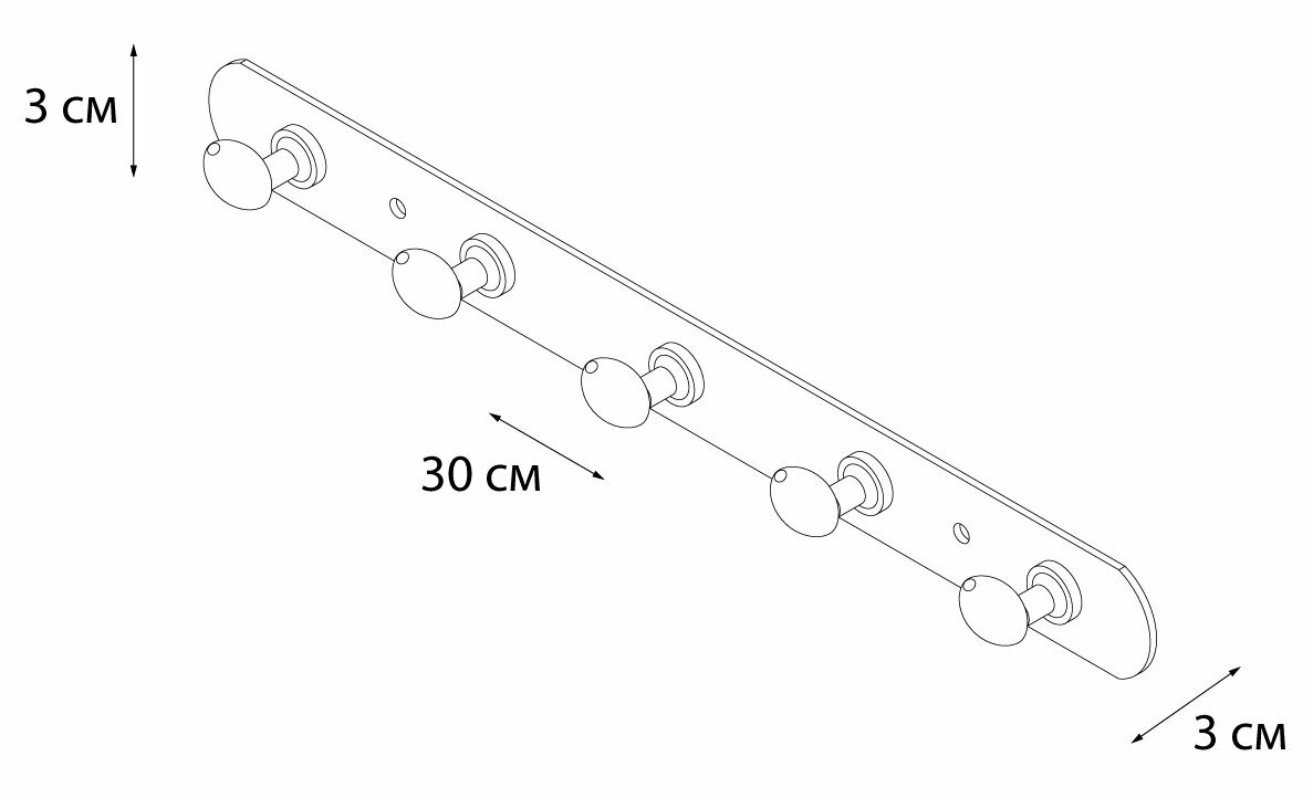 планка 5 крючков, монтаж: настенный. Ширина: 30. Высота: 3 см. Глубина: 3 см. Метод крепления: клейкая основа. Тип рисунка: без рисунка. Фактура: гладкая. Форма: округлая