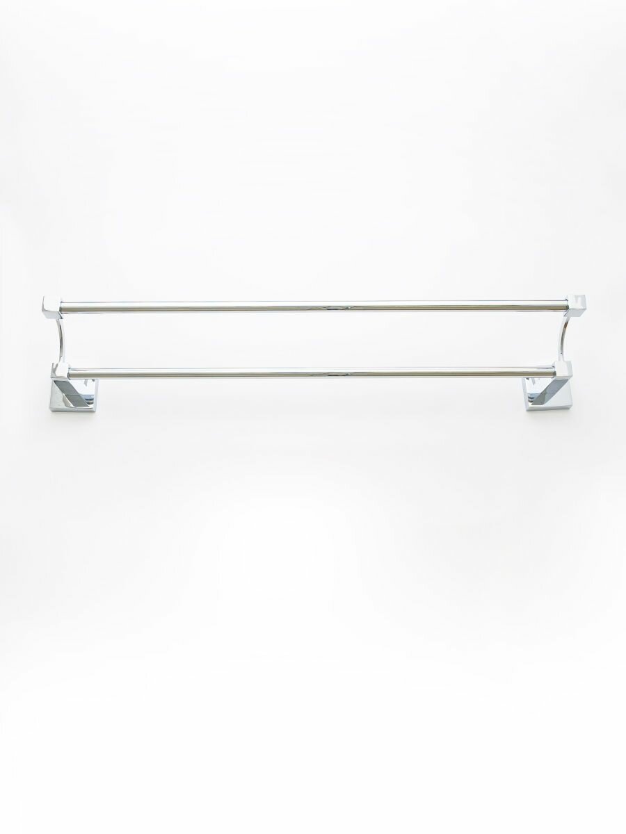 Металлический трубчатый подвесной держатель для полотенец Fixsen Metra FX-11102 двойной с квадратным основанием в лаконичном дизайне, который подойдет к любому современному интерьеру ванной комнаты.