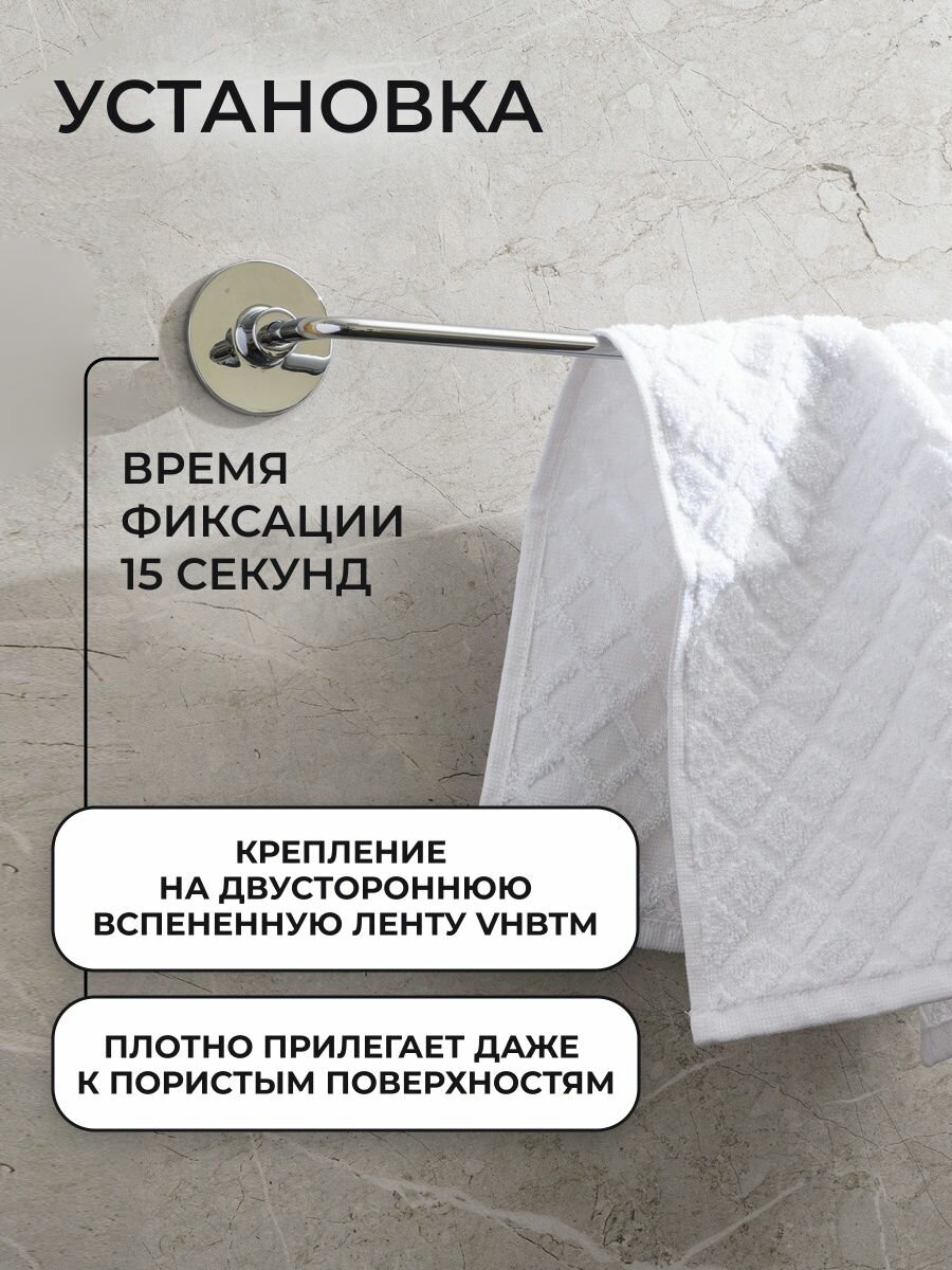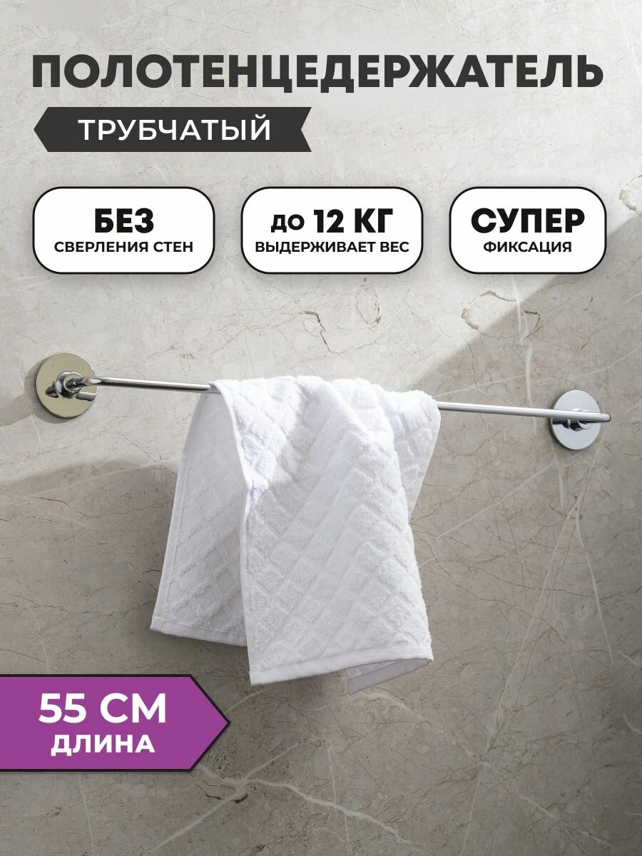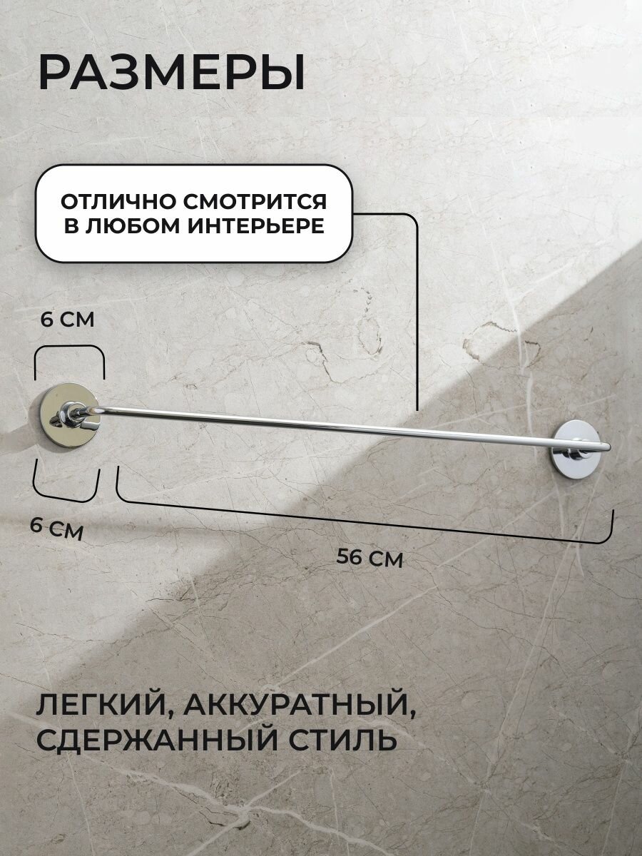 полотенцедержатель трубчатый, монтаж: настенный. Ширина: 55,6. Высота: 5,5 см. Глубина: 6,5 см. Метод крепления: шурупы. Тип рисунка: без рисунка. Фактура: гладкая. Форма: округлая