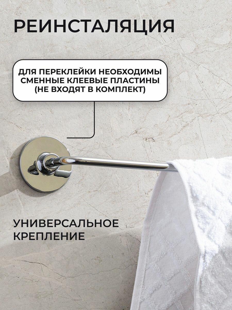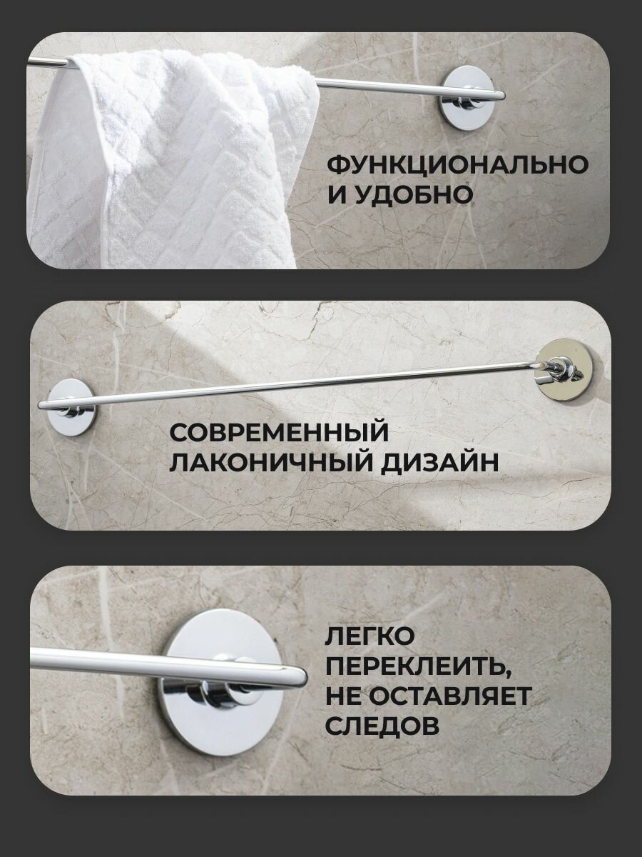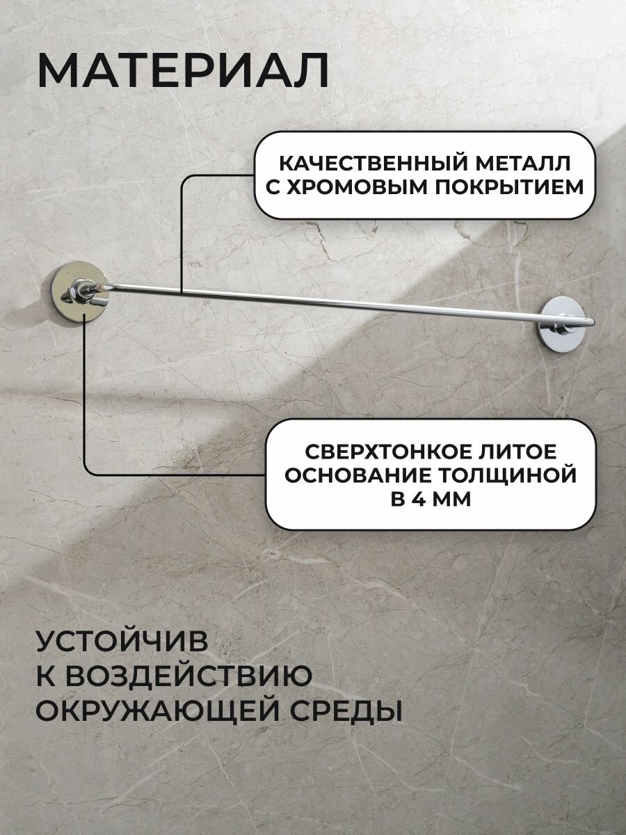 полотенцедержатель трубчатый, монтаж: настенный. Ширина: 55,6. Высота: 5,5 см. Глубина: 6,5 см. Метод крепления: шурупы. Тип рисунка: без рисунка. Фактура: гладкая. Форма: округлая