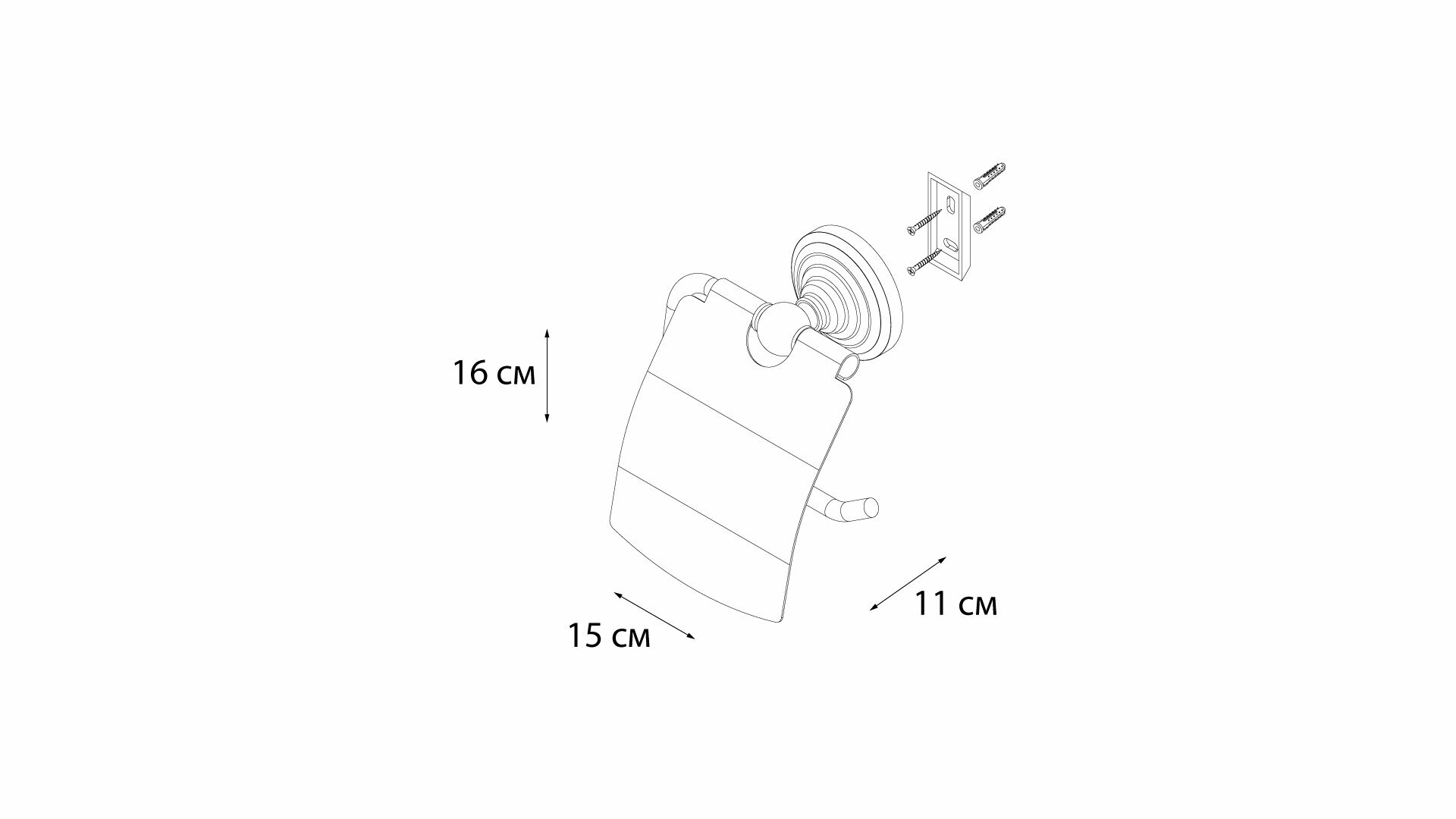 Держатель для туалетной бумаги. Монтаж настенный при помощи шурупов. Размеры: 14,5x15,5x6,5 см.