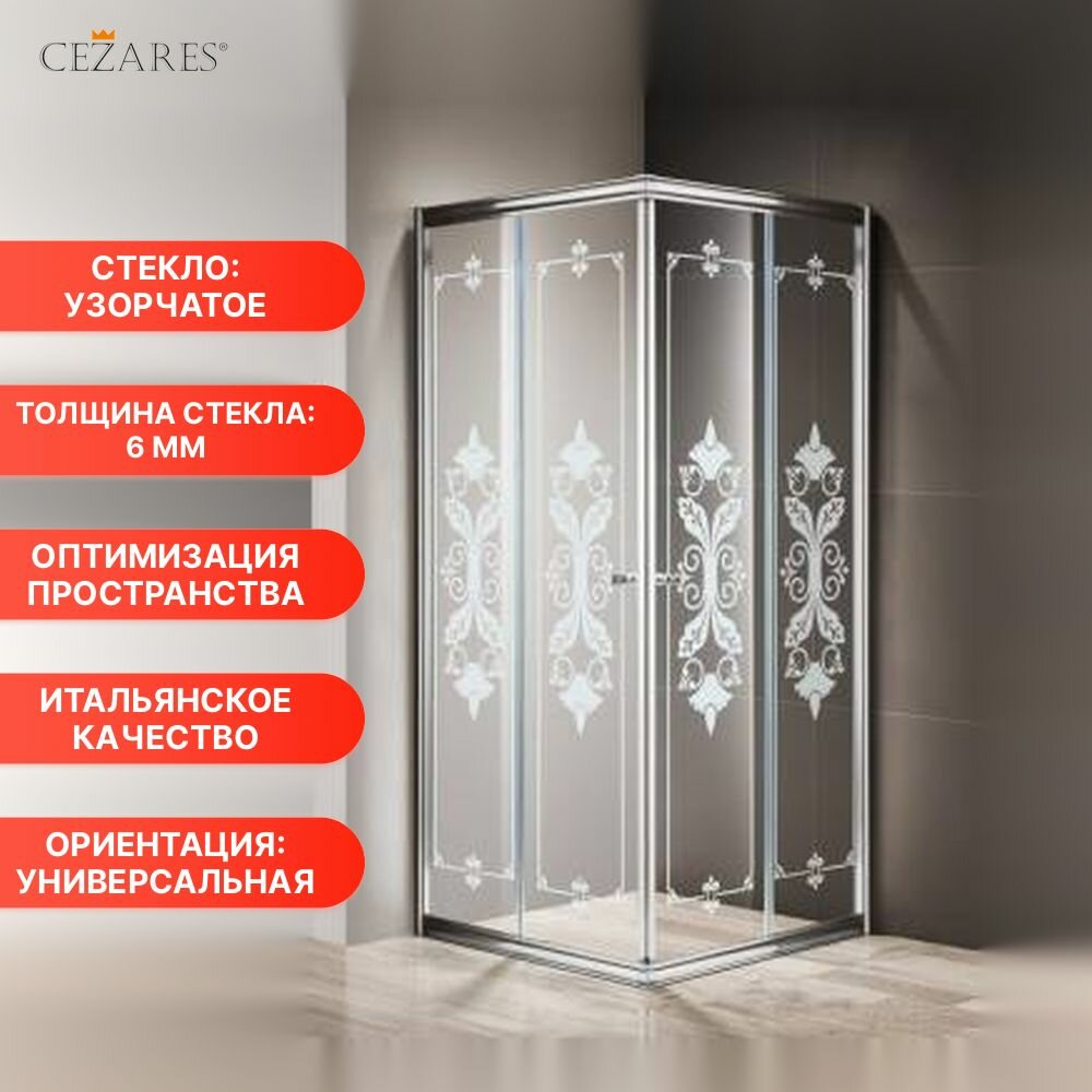 Душевой уголок Cezares Giubileo A-2 80х80 профиль Хром стекло прозрачное с матовым принтом