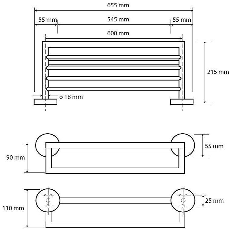 Полочка для полотенец 220x600мм