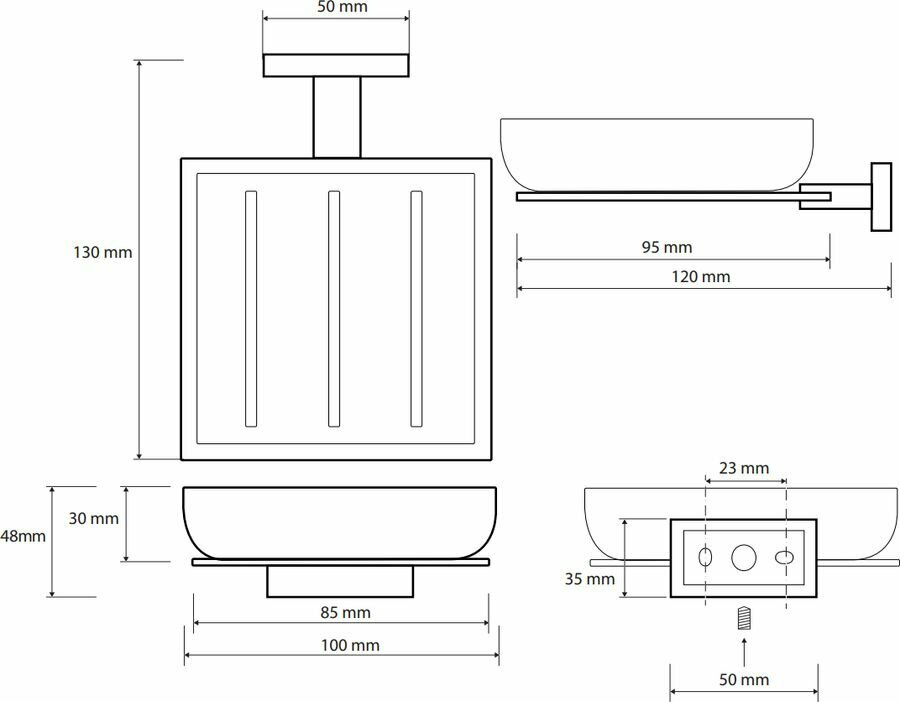 | ВКоробке | Мыльница - 1 шт. Держатель - 1 шт. Набор креплений - 1 шт. Инструкция - 1 шт. |