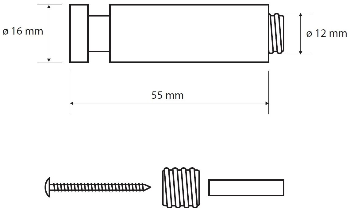 - Размеры (ШхВхГ): 16х16х55 мм.