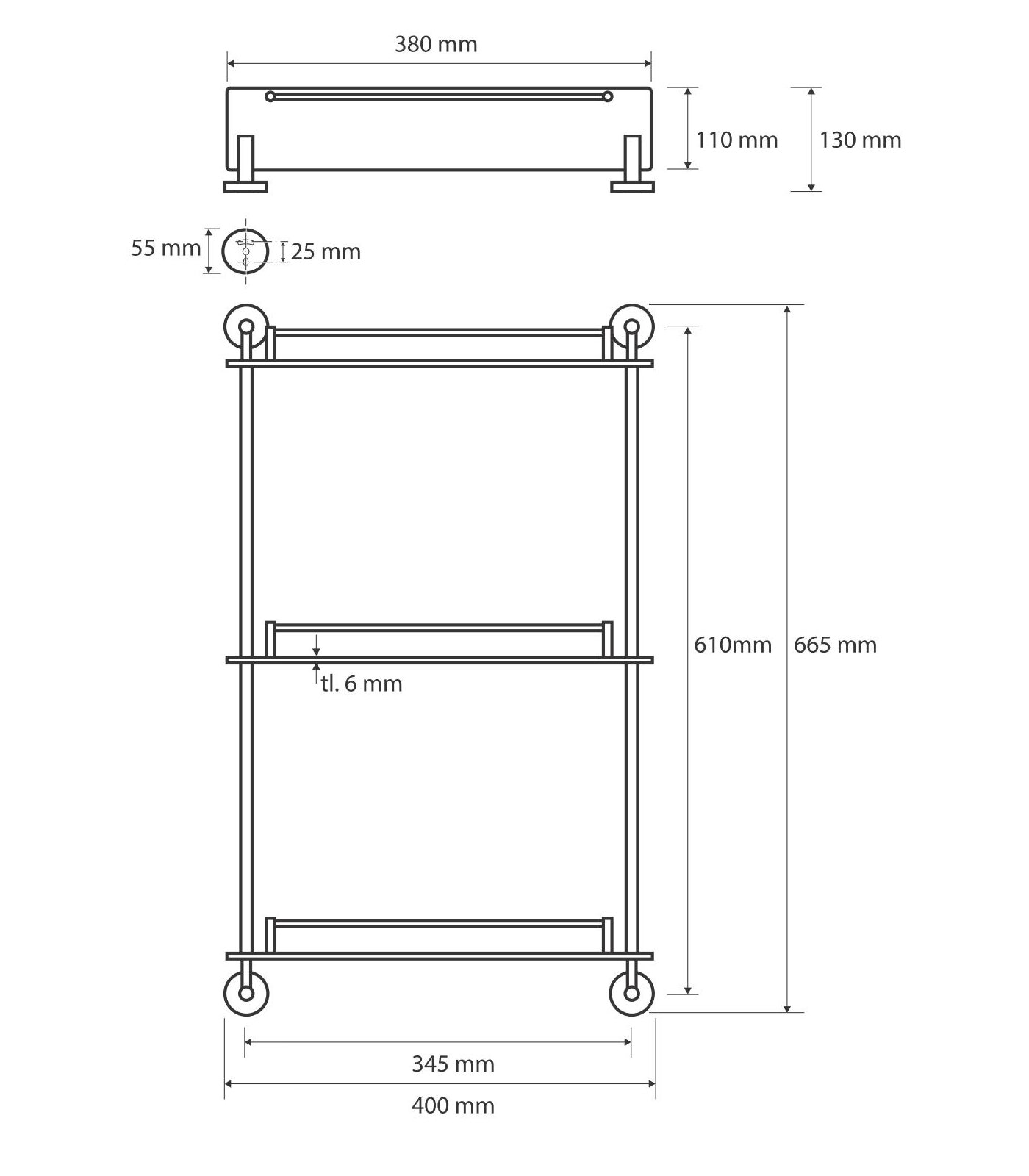 Полочка стеклянная тройная 365x115x620 мм
