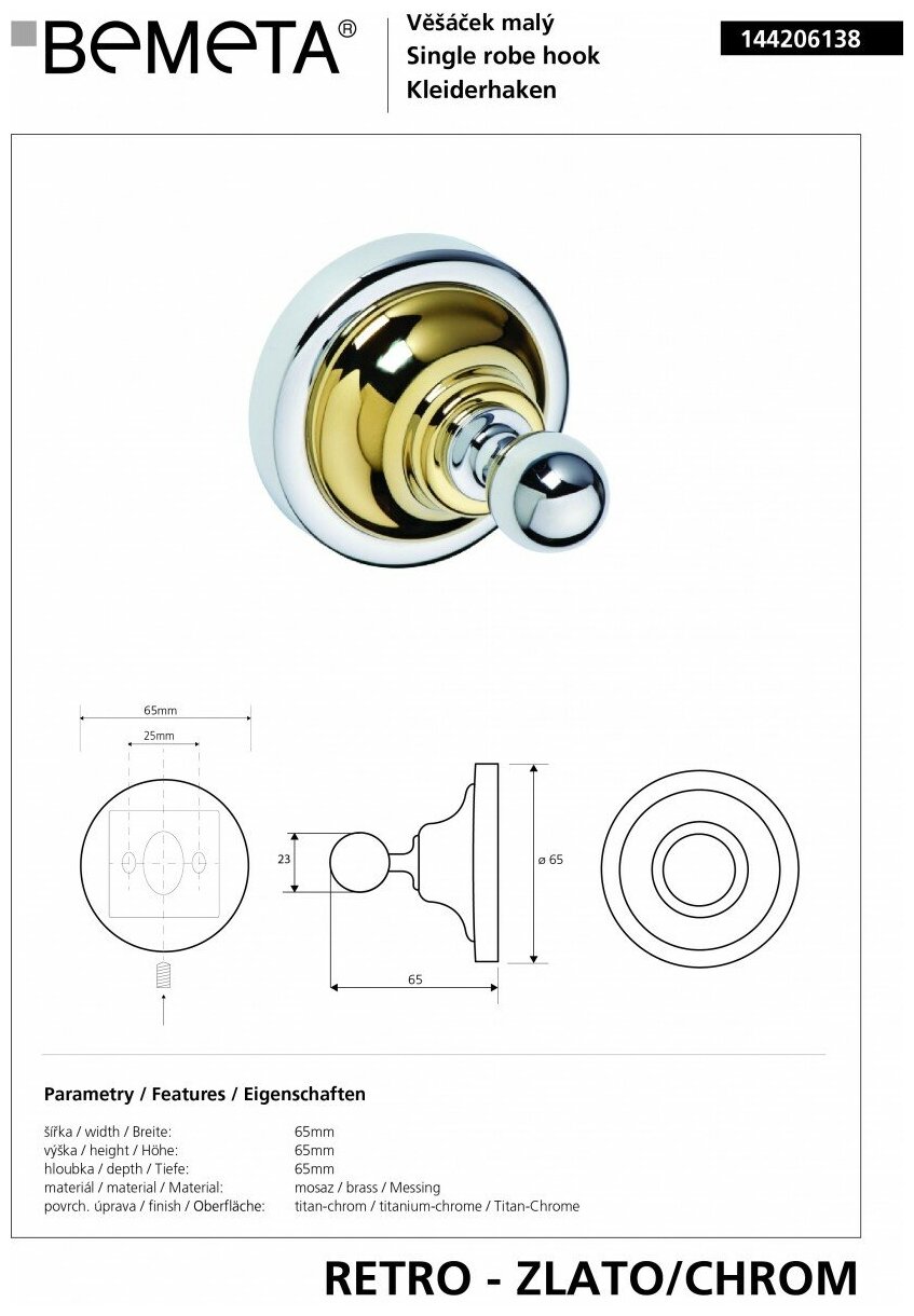 Крючок для полотенца Bemeta Retro chrom 144306132 Хром
