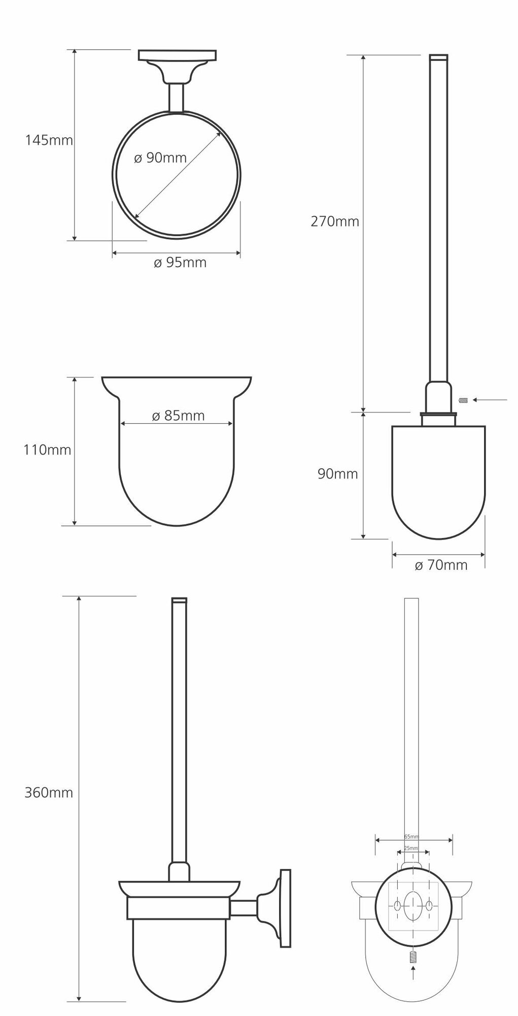 WC щетка стекло. высота: 361 mm, ширина: 111 mm, глубина: 146 mm,
