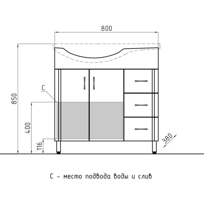 Технические характеристики:- Габариты тумбы: 80 x 38 x 85 см,