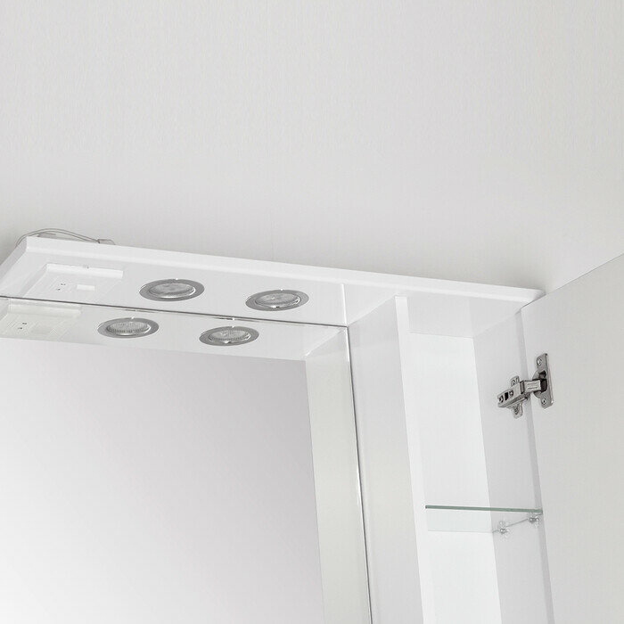 | Оснащение | зеркало с подсветкой, механизм доводчика, зеркало с полочкой, зеркало с розеткой, крепления, зеркало |