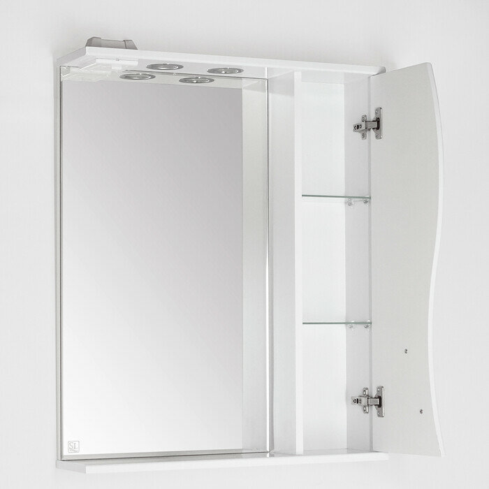 Зеркальный шкаф Style Line коллекции "Амелия" с подсветкой и декоративной фрезеровкой фасада. Стеклянные полки с еврокромкой и прозрачными полкодержателями Hefele; лазерная гравировка фирменного логотипа; встроенные светильники в шкафах комплектуются выключателем, розеткой и трансформатором. Высокоточная обработка кромки фацетом 10 мм придает изделию законченный вид и защищает от порезов.