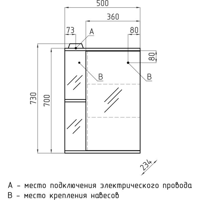 | ВКоробке | Зеркало-шкаф - 1 шт. Вкладная полка - 2 шт. Комплект доводчиков - 1 шт. Комплект подсветки - 1 шт. Инструкция - 1 шт. |