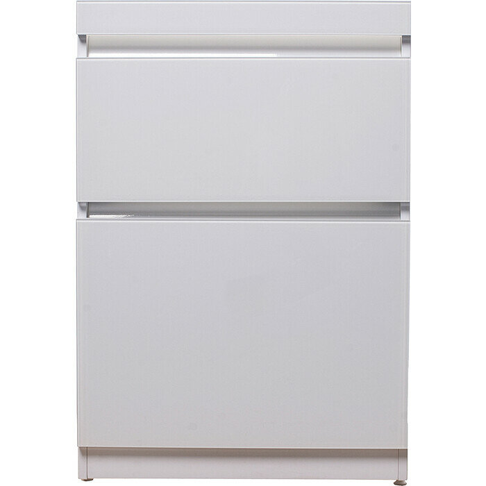 Напольная тумба шириной 58 см изготовлена с использованием высококачественных материалов. Особую престижность тумбе придает ее фасад, выполненный из сверхпрочного и гладкого глянцевого стекла по технологии Lacobel. Скрытые ручки придают модели лаконичный и современный вид, а также экономят пространство. Предназначена для использования в условиях повышенной влажности.