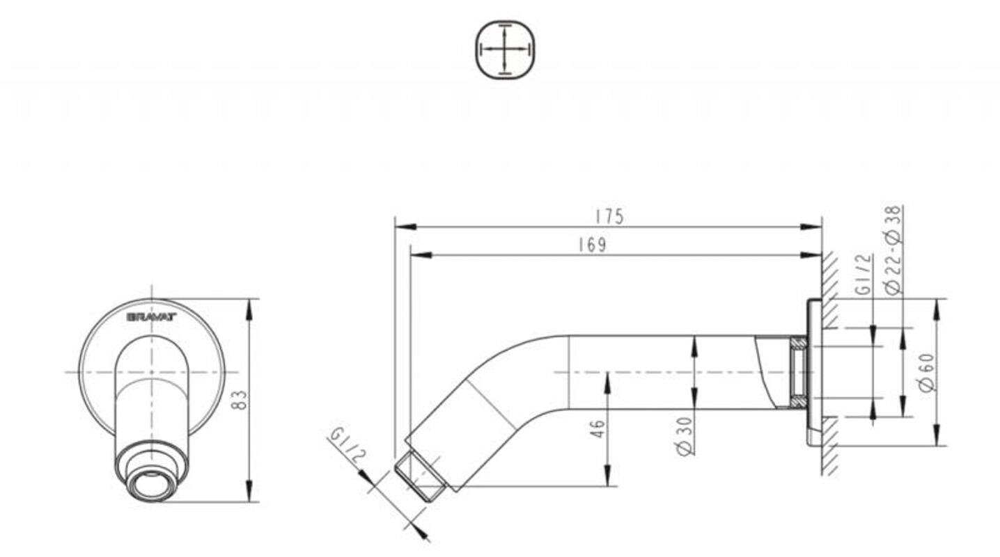 Кронштейн для верхнего душа Bravat Built-in D312C-RUS Хром