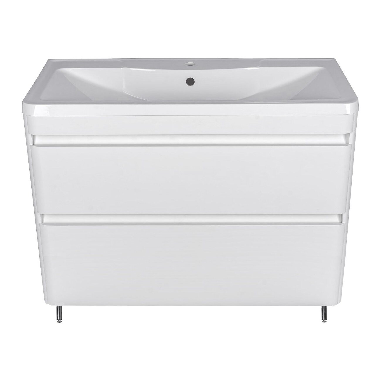 Тумба под раковину на ножках Style Line Атлантика Люкс Plus 90 СС-00002212 с двумя выдвижными ящиками. Предназначена для использования в ванных комнатах с повышенной влажностью. Ящики оснащены доводчиками для плавного закрывания.