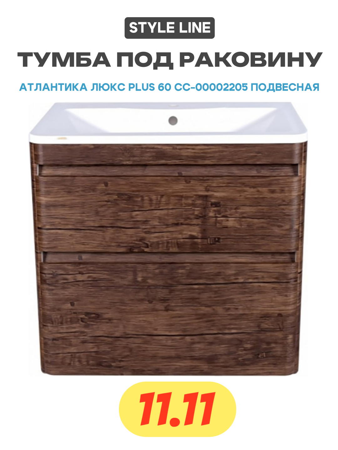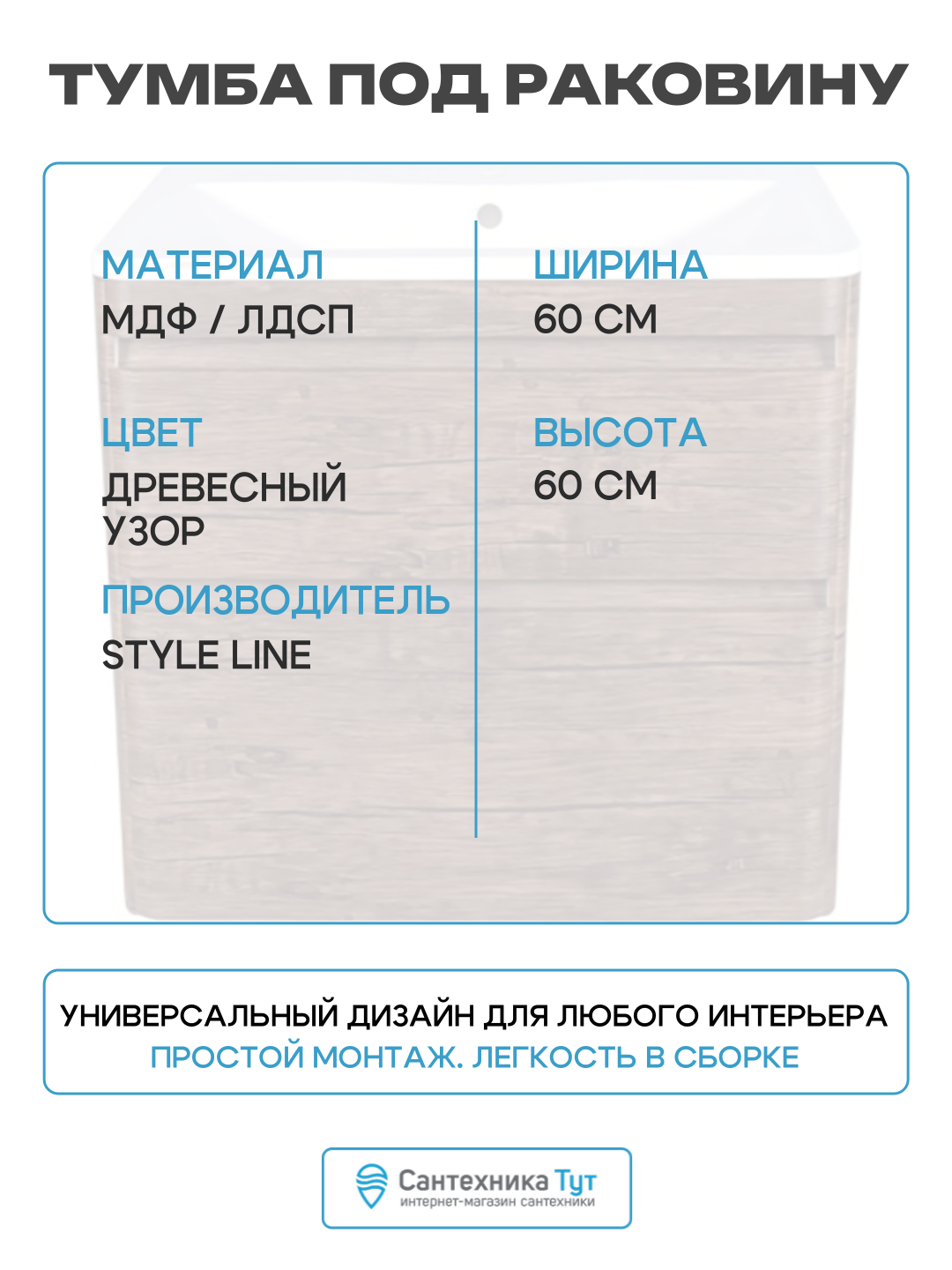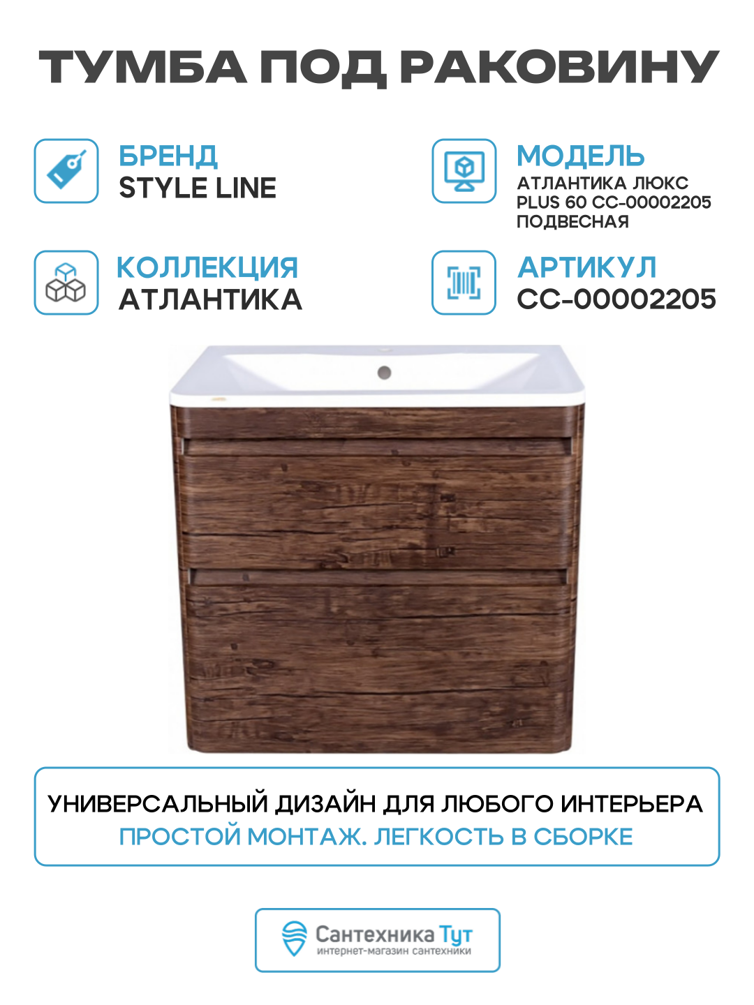 На сегодняшний день товар «Тумба под раковину Style Line Атлантика Люкс Plus 60 СС-00002205 подвесная Старое дерево» можно купить с кешбеком в 3 магазинах: Santehnika-room, Сантехника Тут, dushevoi