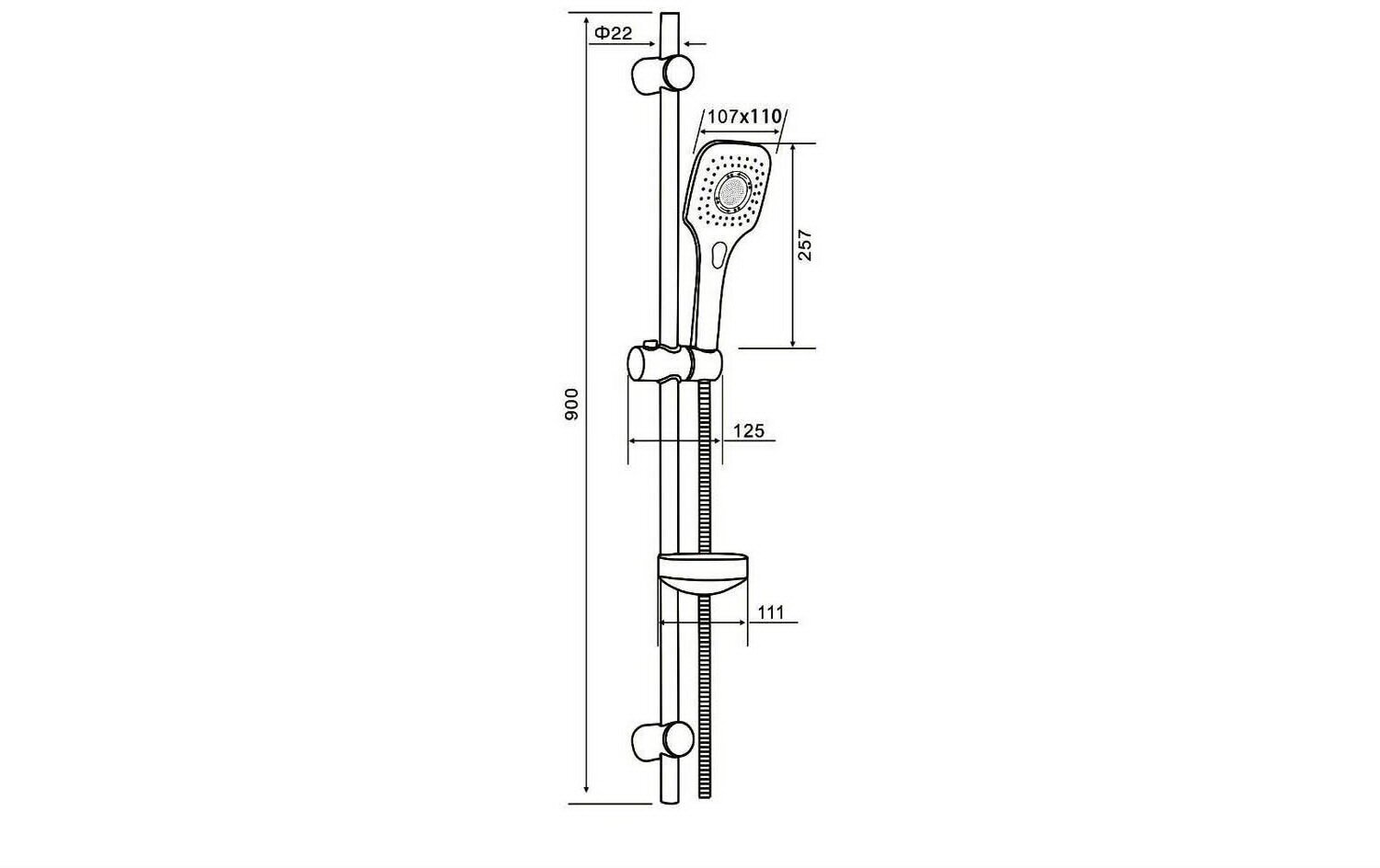 | Оснащение | душевая лейка, мыльница, шланг для душа, настенный держатель |