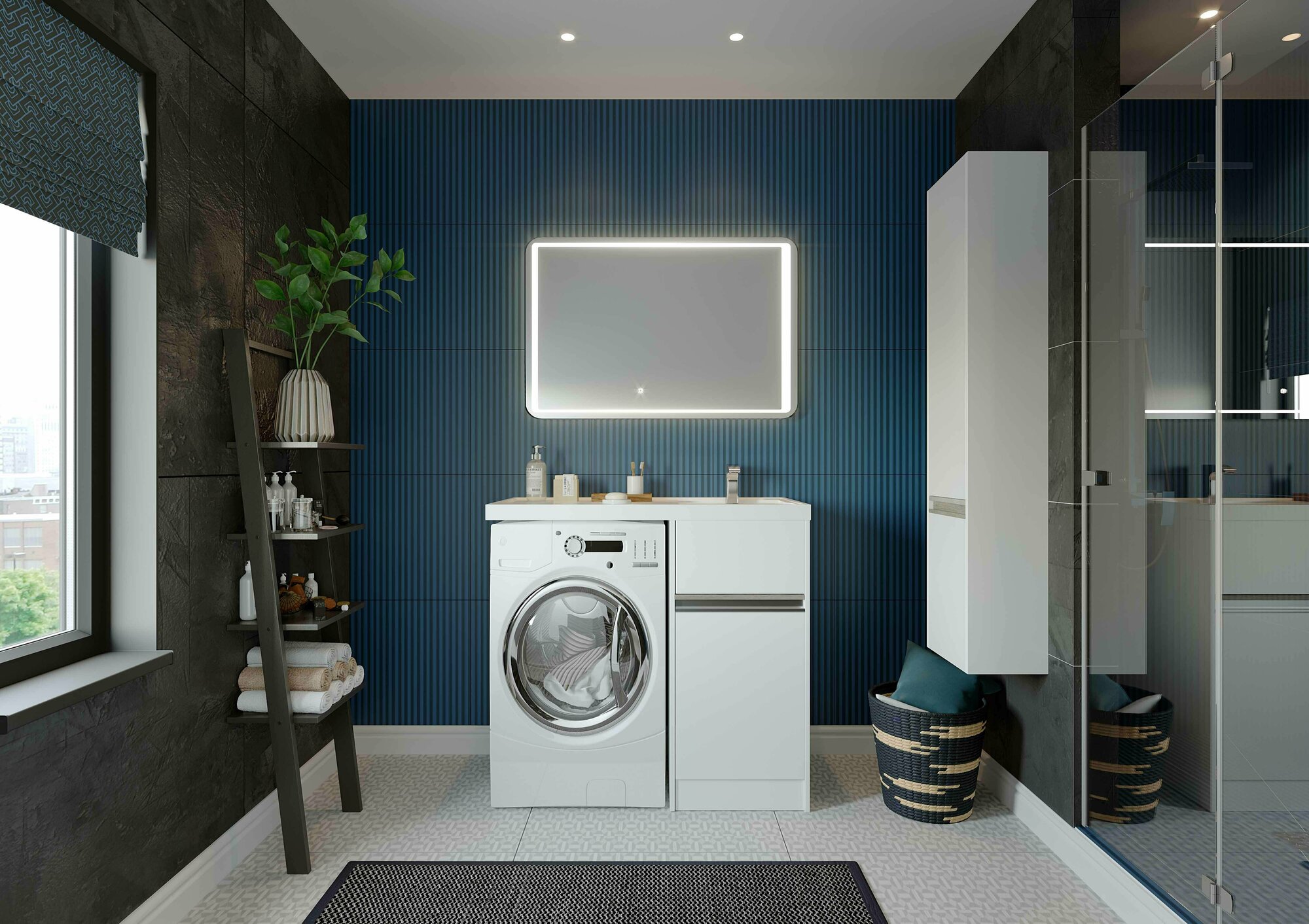 Шкаф пенал Акватон Лондри 34 Белый глянец