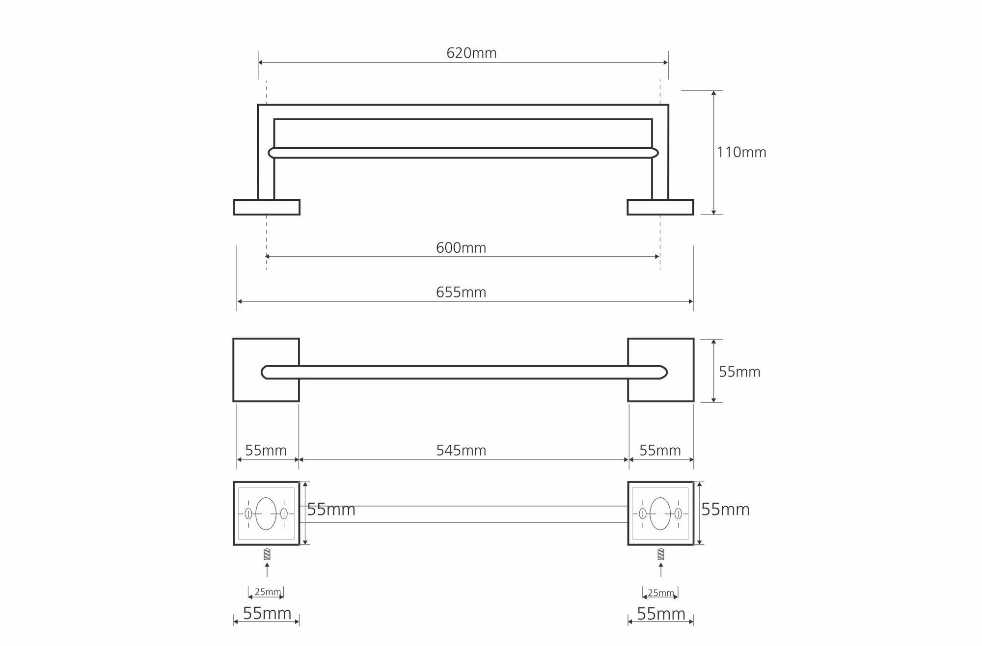 Двойной держатель полотенца 600мм