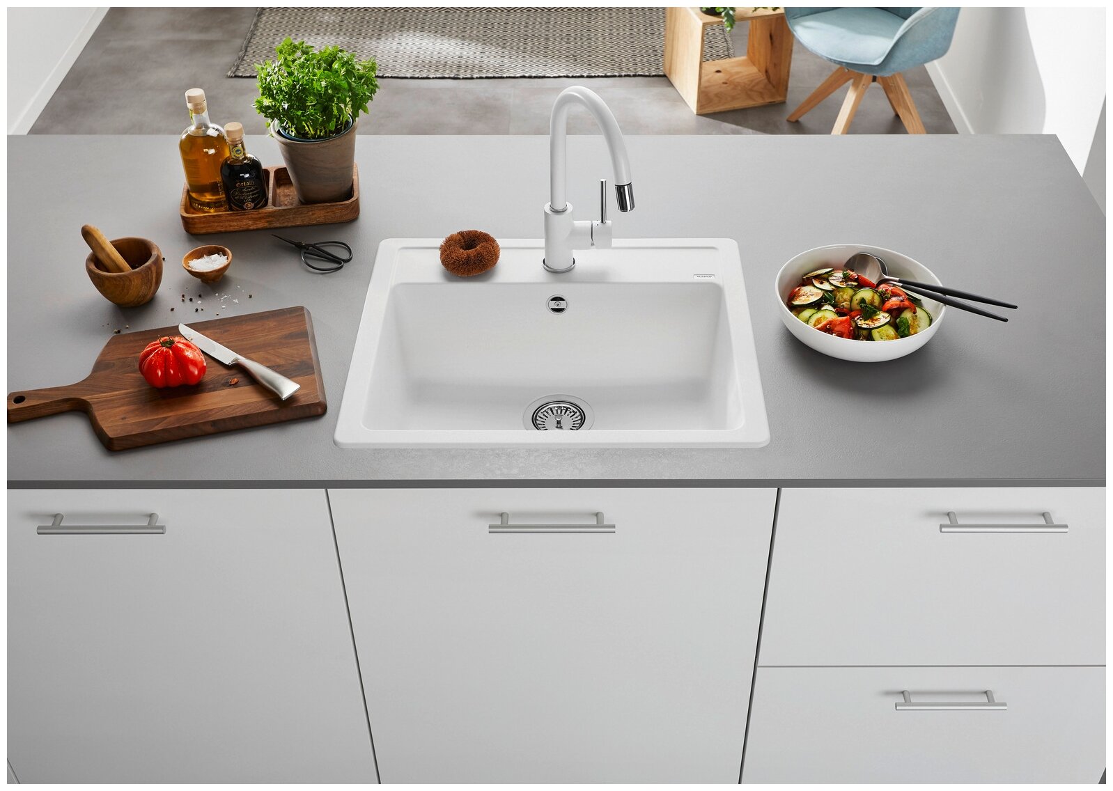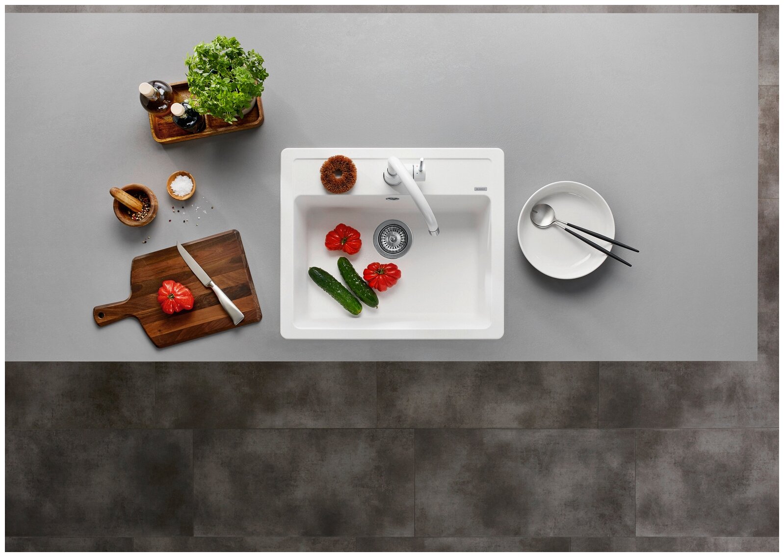 Прямоугольная кухонная мойка Blanco Legra 6 из гранита, с вместительной чашей и удобным широким бортиком для смесителя и принадлежностей. Элегантное решение для кухни: классический дизайн, приятный цвет: антрацит, эффективное использование пространства и комфортные условия.
