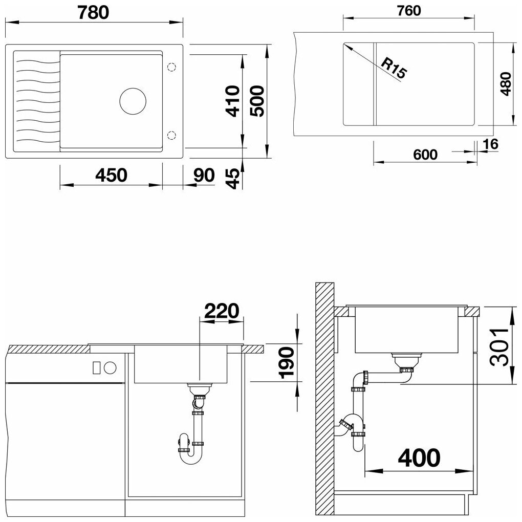 - Гранитная кухонная мойка Blanco SONA 45S антрацит