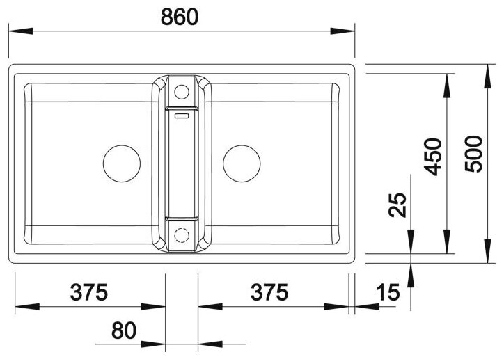 Модель для врезной установки изготовлена из композитного гранита. Раковина состоит из двух удобных чаш одинакового размера.