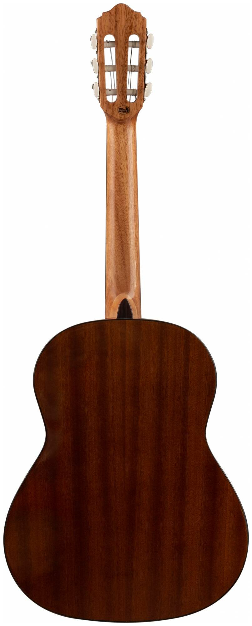 Уменьшенная классическая гитара, размер которой составляет 3/4. Такая гитара ориентирована на тех гитаристов, которые учатся играть с юных лет, или же желают приобрести небольшой инструмент для поездок. Классическая шестиструнная гитара C-120 NA 3/4 изготавливается по всем стандартам лучших классических гитар. В конструкции инструмента используются только компоненты высокого качества, благодаря которым музыканты приобретают хороший инструмент с классическим мягким звучанием в лучших традициях классических испанских гитар. Верхняя дека изготовлена из массива ели, нижняя дека - сапеле, цвет гитары натуральный. Гитара под правую руку. Инструмент имеет удобный гриф стандартной величины с накладкой из палисандра. Колки литые - 3 х 3, хромированные.
