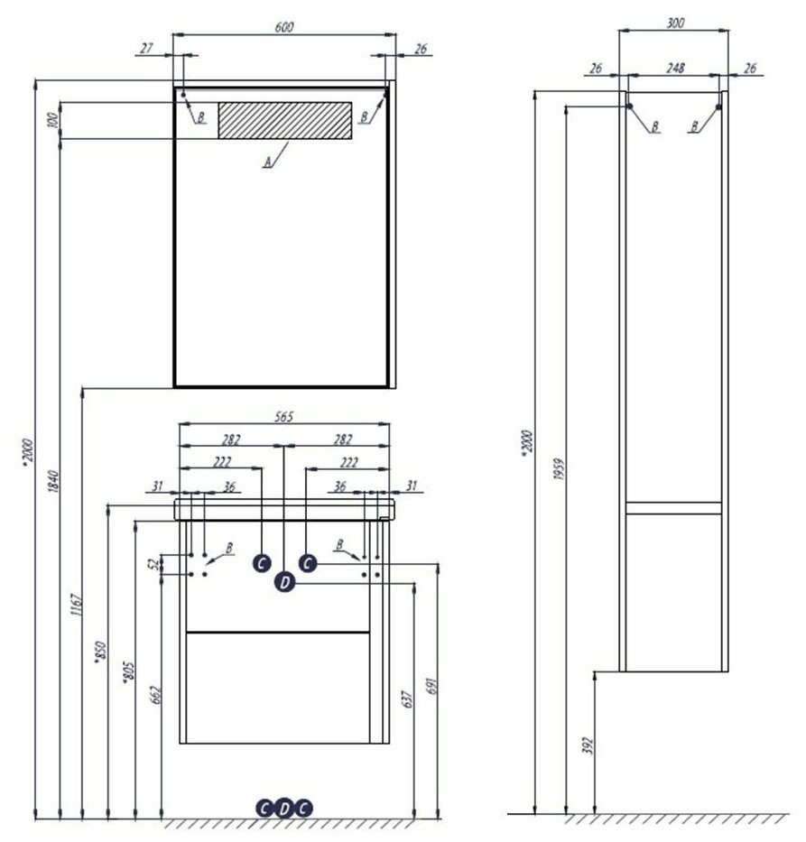 | Высота, мм | 833 |