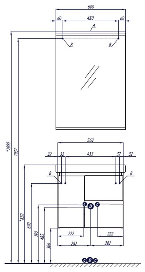 | Тип установки мебели для ванной | подвесной |