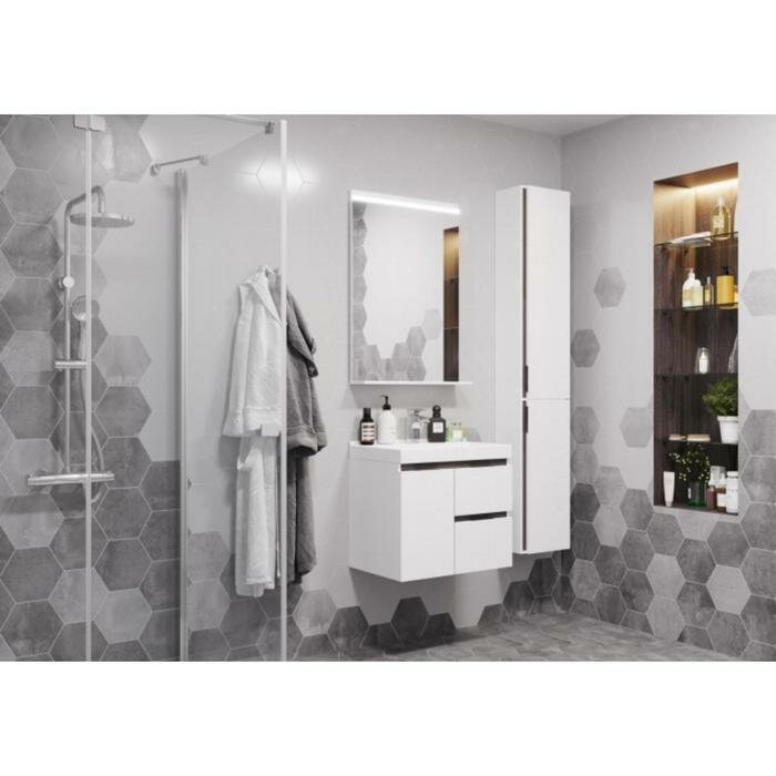 Зеркало Рене 60. Светодиодный светильник - 1, интегрированная полка-1. Материал корпуса влагостойкая ДСП.