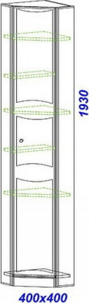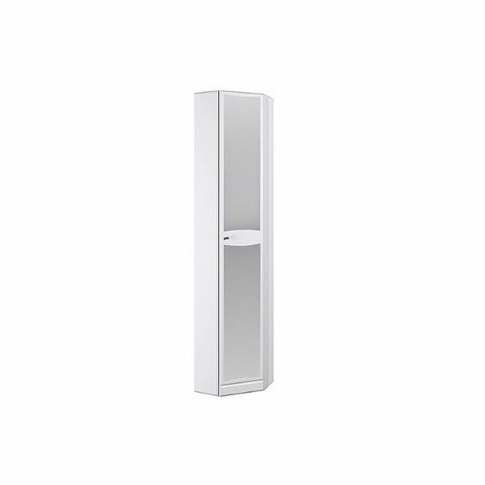 Универсальный левый/правый напольный угловой пенал с зеркалом и полочками. Петли с интегрированным доводчиком. Ширина 40 см. Цвет белый.