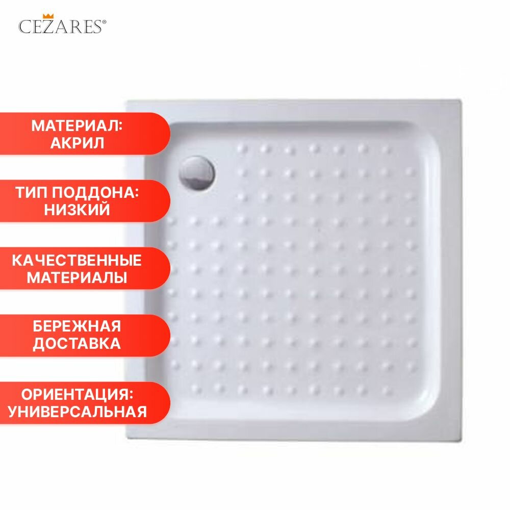 Цельнолитой акриловый душевой поддон Cezares Tray A A 90x90x15 TRAY-A-A-90-15-W квадратный, низкий.