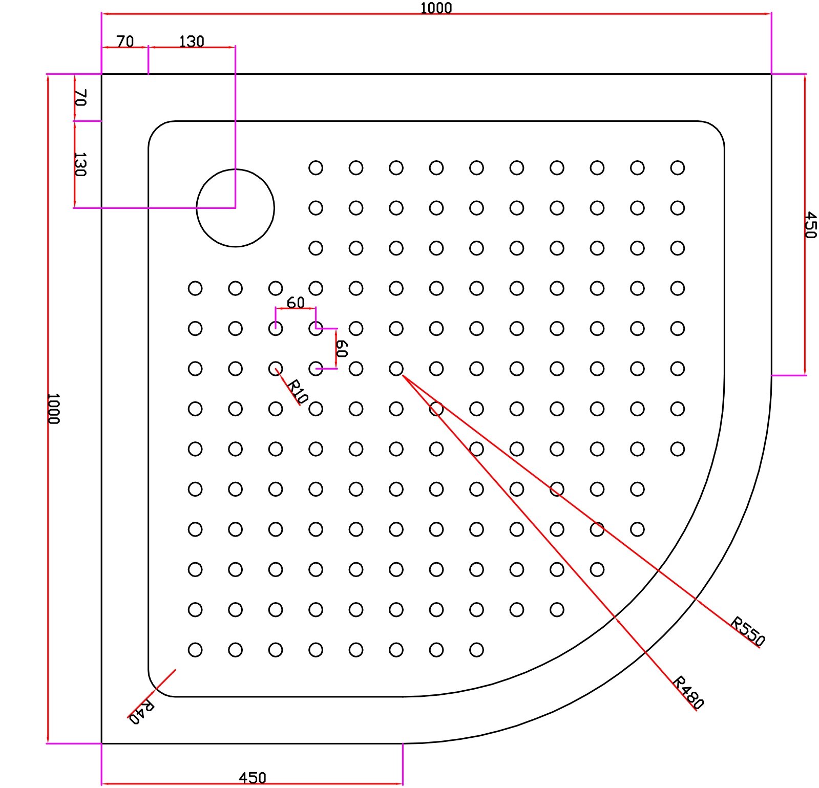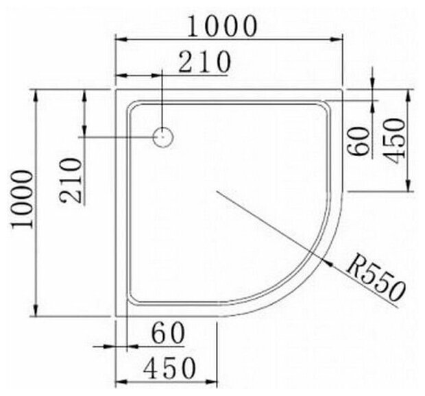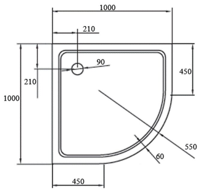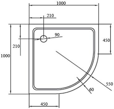 Цельнолитой акриловый душевой поддон Cezares Tray A R 100x100x15 TRAY-A-R-100-550-15-W радиальный, в форме четверти круга, низкий.