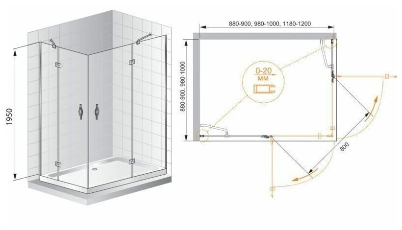 | Поддон в комплекте | Нет, установка на пол без поддона / Нет, приобретается отдельно |