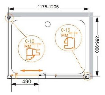 Уголок с одной раздвижной дверцей и универсальной ориентацией станет прекрасным дополнением любой ванной комнаты. Превосходно будет сочетаться в интерьере современного или ретро стиля за счет изысканных форм и плавных линий.