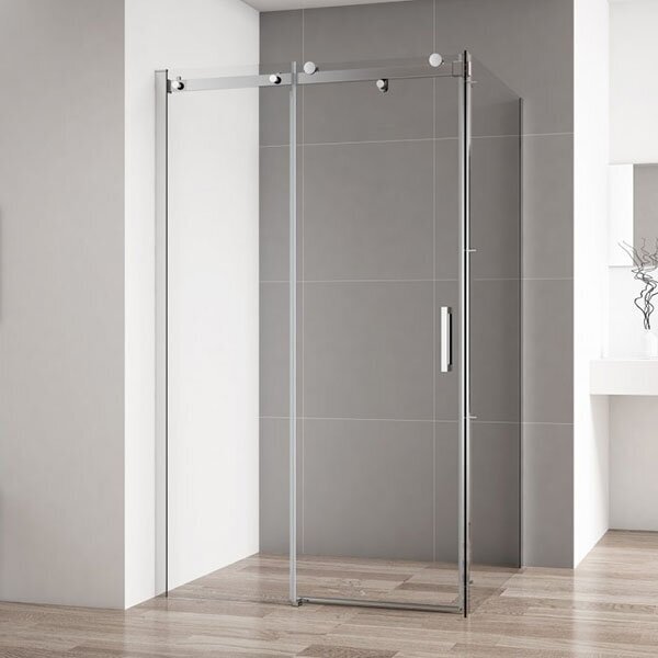 Дверь уголка имеет направляющий профиль с односторонним доводчиком. Комфортное использование обеспечивают подвижные ролики, которые плавно скользят по металлическим направляющим.