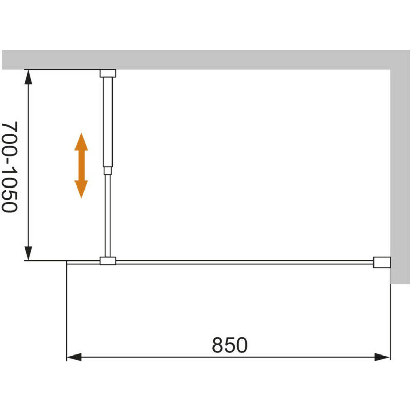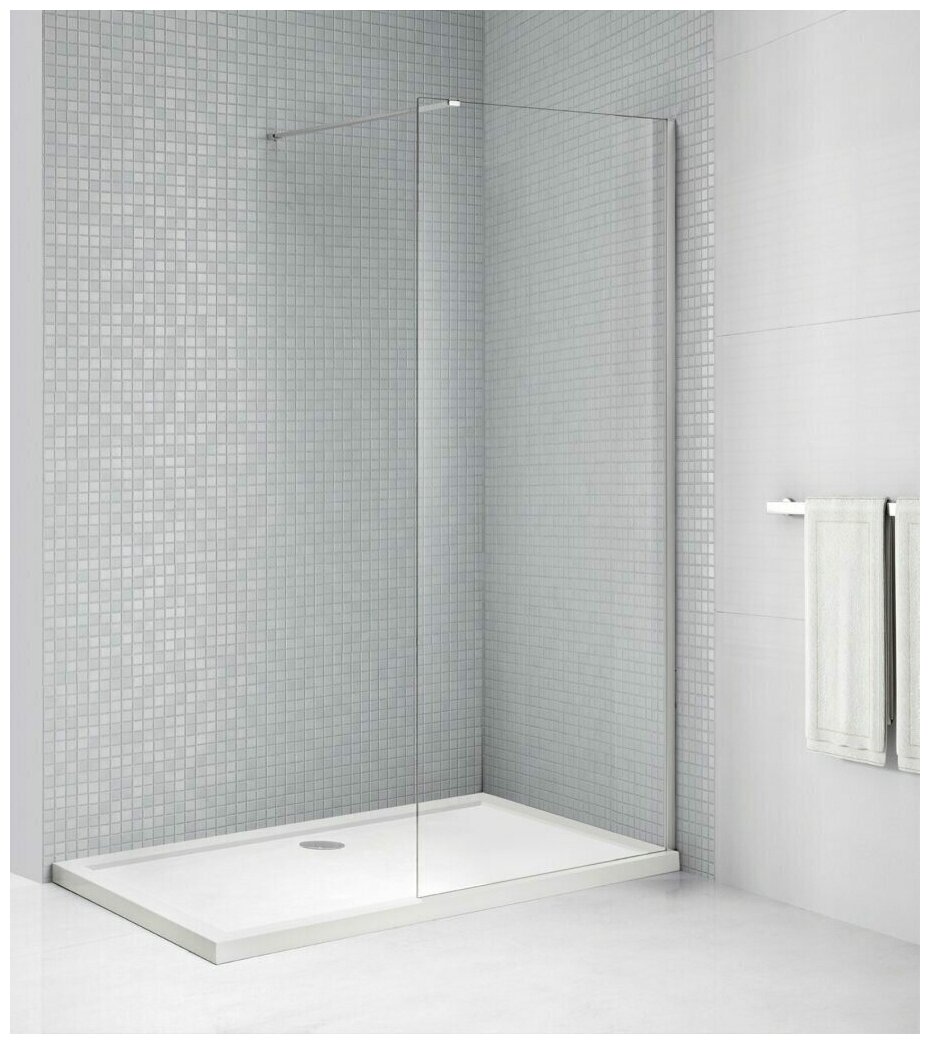 Стеклянная душевая перегородка Cezares Liberta L-1 85 LIBERTA-L-1-85-C-C со свободым входом с одной стороны. Верхний телескопический кронштейн позволяет регулировать ширину входа.