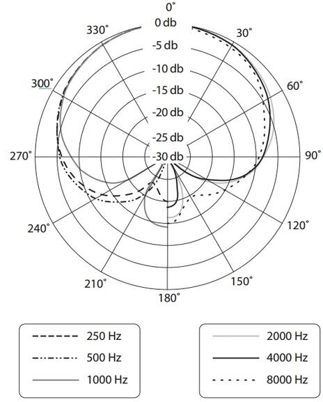 - Кардиоидная характеристика минимизирует фоновые шумы и обратный отклик;