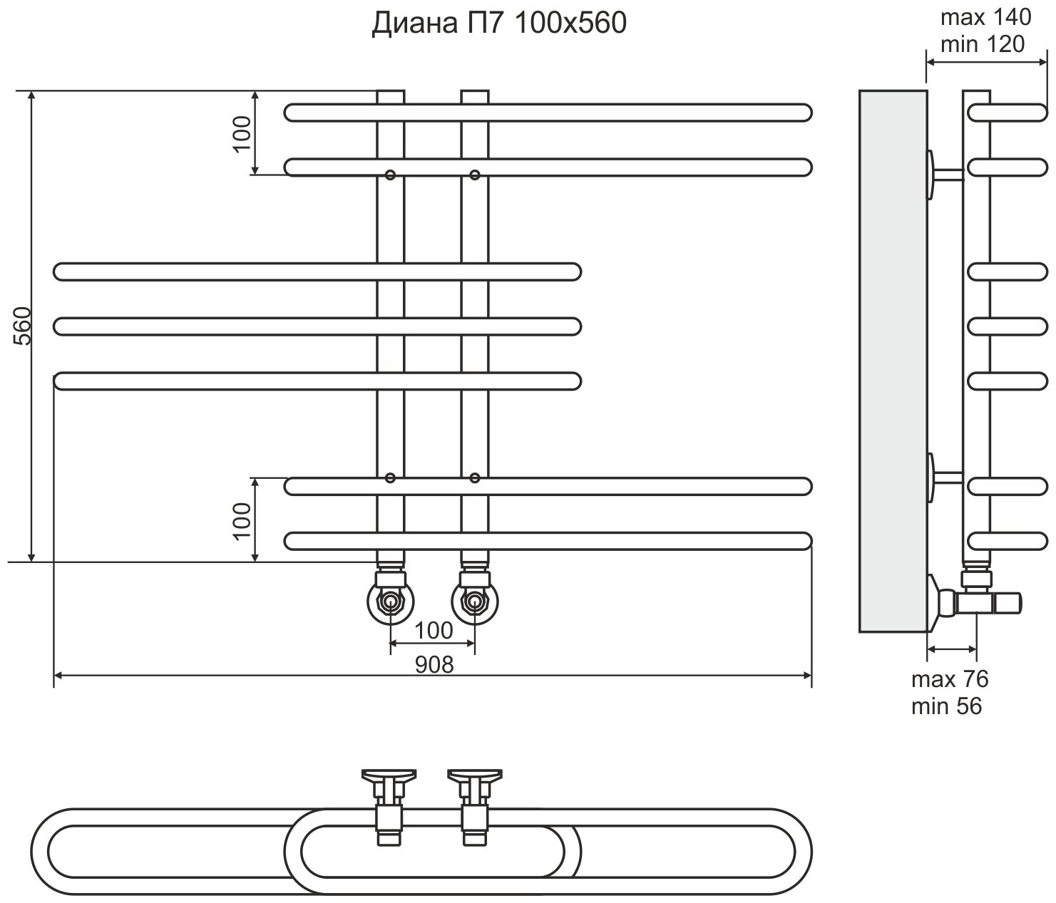 Водяной полотенцесушитель Terminus Диана П7 100х560 Хром