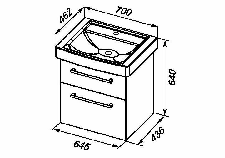 Габариты корпуса тумбы (ШхВхД): 70 х 46 х 64 см.