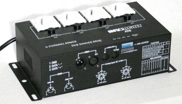 Involight AD8 диммер 4-х канальный 1 кВт на канал DMX-512 аналоговое 0-10 В (размер: 318x165x96 мм)