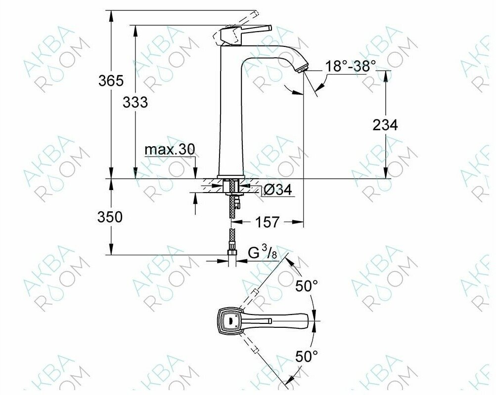 | Высота излива, мм | 234 |