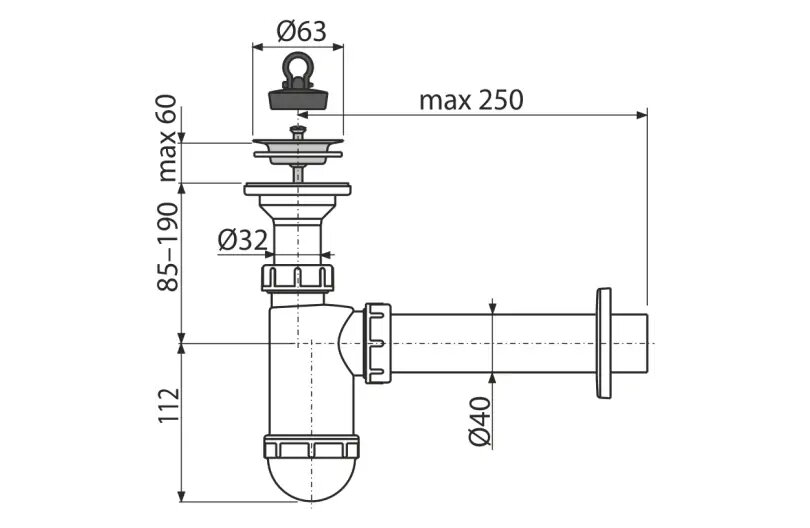 | Тип сифона/выпуска | бутылочный (колбовый) |
