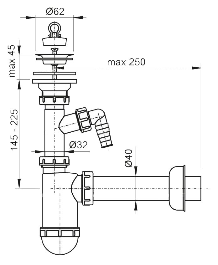 | Для слива диаметром, см | 1 1/2" (4 см) |