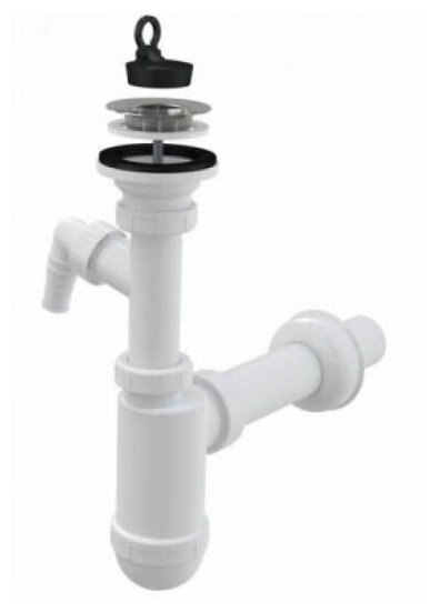 Бутылочный сифон для раковины Alcaplast A410P со штуцером и peшeткой из нержавеющей стали. Легко устанавливается, снимается и очищается.