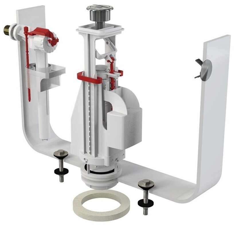 Выпускной комплект для унитазных бачков AlcaPlast SA08K 1/2.Технические особенности:Широкий диапазон для регулировки по высоте.Регулировка сливной кнопки вне оси ее механизма.Устойчивость к образованию водного камня.Механизм затвора не чувствителен к перепадам давления в водопроводе.Сито для улавливания твердых частиц грязи и ржавчины.В комплект поставки входит:Сливная арматура.Прокладки.Шурупы.Заглушки.Кнопка смыва старт/стоп с покрытием цвета хром.