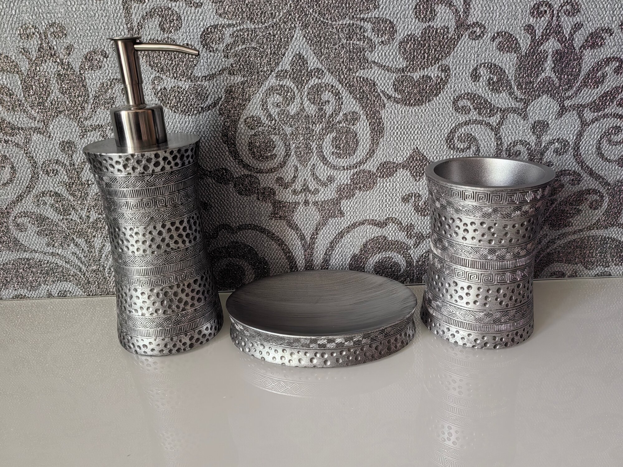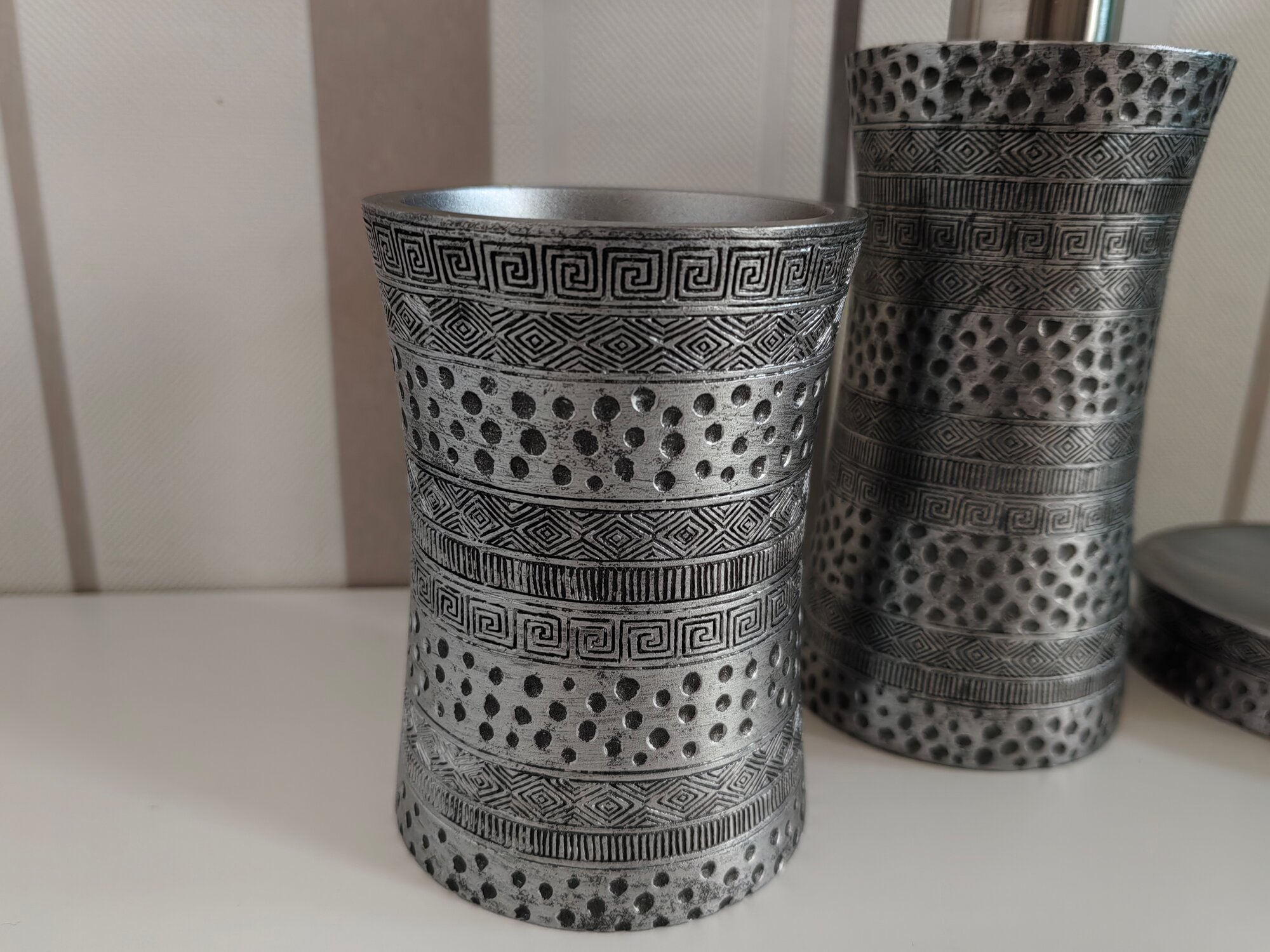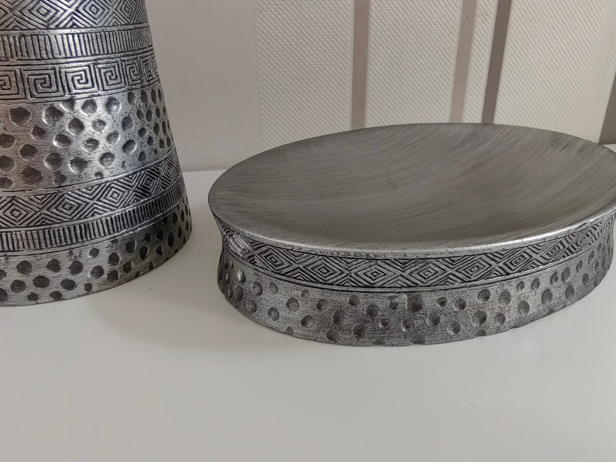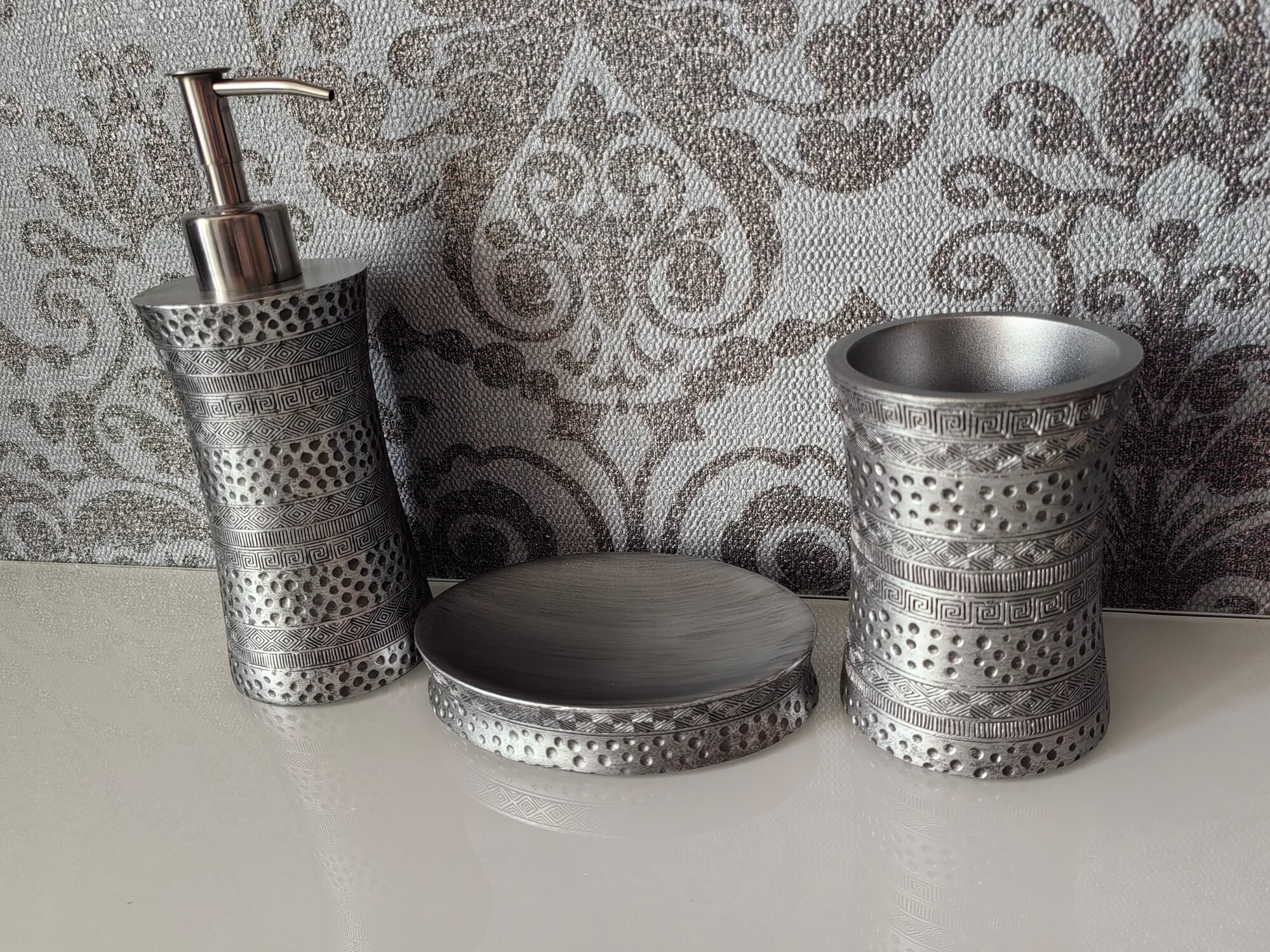 Рисунок коллекции Salm напоминает нам древние узоры. Вместе с этим они очень гармонично разместились на блестящей серебристой поверхности. Кажется, что нам досталось послание из прошлого, адаптированное под современность.